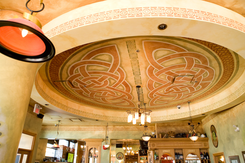 Chris worked with the acclaimed Irish Pub Company out of Dublin to create the final public house. The challenge was to take the 5052 square foot space, that seats more than 200 people, and design it in a way as to maintain the cozy feel that pub goers are drawn to. Everything from the Gaelic inspired design, signature ceiling, unique bric-a-brac, snugs, and menus all work together seamlessly to create an authentic Irish public