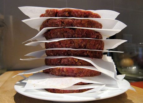 This photos is courtesy of Ted Reader. He didn’t take it, I did. It’s the perfectly anal stack of burgers I formed after being inspired by my recent conversation with Ted, and following a read of his book, Napoleon’s Everyday Gourmet Burgers! The book is as stuffed with great burger tips and inspirations as you will be after eating what you make from it.