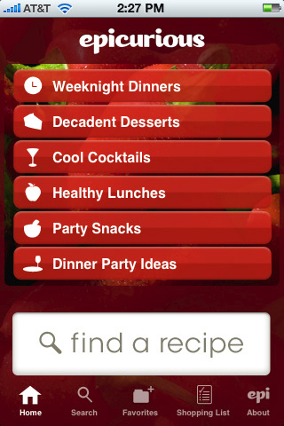 A huge database of recipes, photos and revirews (and sometimes wine pairings) with the ability to tag favorites and add ingredients to a shopping list. Searchable by meal, cuisine, diets, dish type and season/occasion. Good information and interface, but I still don’t use it all that much.