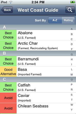 Similar to Ocean Wise, the Monterey Aquarium has put together a database of seafood that is ok to eat, divided into categories of Best Choice, Good Alternative and Avoid.