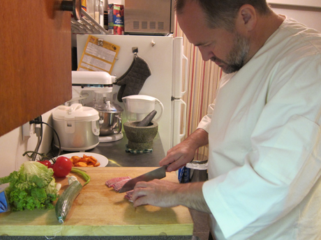 When I wear my new Dajoji coat, I feel…I dunno…more fashionable. More confident even. The style reminds me of a cross between Captain Picard and Bruce Lee (which I like). My wife Andrea (also a serious cook) tried one too, her’s being even more fashion forward, with a shoulder flap and subtle pattern stitched into it. Beyond all their other positive attributes, these are good looking chef coats!