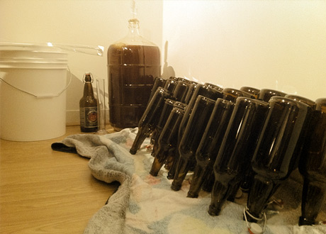 Then here comes the tricky part: you have to wait. Put the bottles in a darker place at room temperature, and give them two weeks or so for the carbonation to build up. You’ll inevitably crack and drink a few in the meantime, but the ones that are stored longer will condition more and produce better carbonation. I’ve found the trick is to have an old batch still around while you wait for the new one to finish.