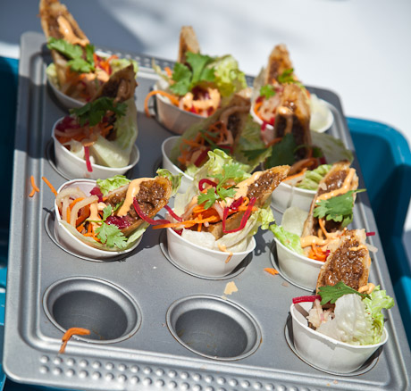 Last weekend Toronto was treated to 1000 tastes, a street food Festival on John Street in the heart of downtown. Some 20 or so restaurants lined the street with their booths offering a wide variety of tasty treats to the crowds of strolling diners. The variety and abundance of food, drinks and treats threatened to overwhelm, so the order of the day was comparing notes with other visitors to see what they had discovered. Susar Lee (always a crowd pleaser at these events) had a definite hit on his hands with his delicate but flavourful lettuce wraps.